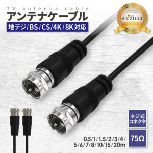 アンテナケーブル 0.5m 1m 1.5m 2m 3m 4m 5m 6m 7m 8m 10m 15m 20m 4K 8K 地デジ BS CS 対応 同軸ケーブル ネジ式 75Ω テレビ アンテナ AVケーブル 衛星放送 ニッケルメッキ端子 シズカウィル